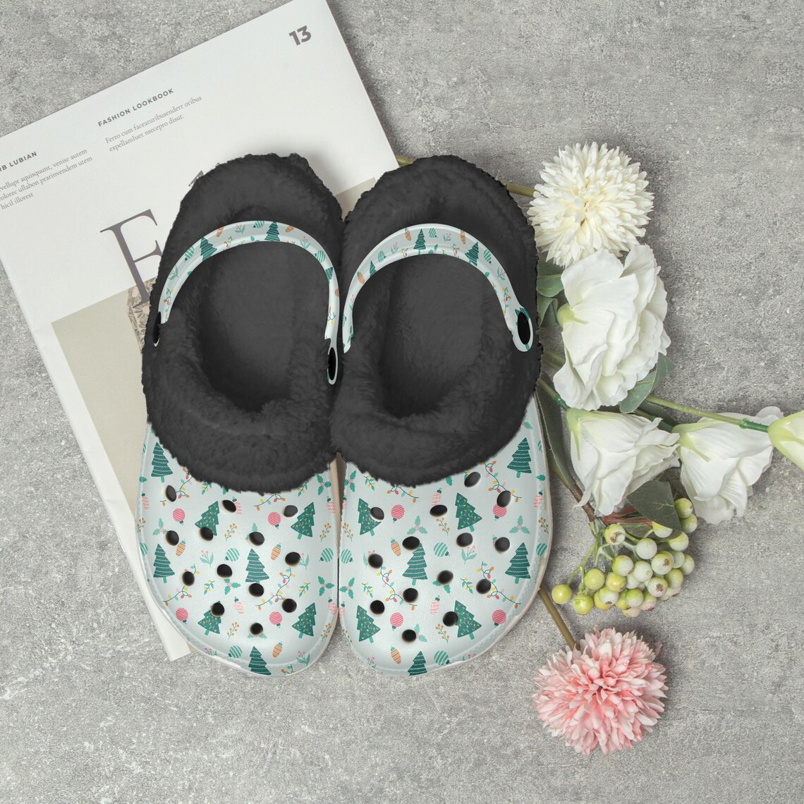 Footwearmerch Colorful Pine Tree And Christmas Crocs Crocband Fleece Lined Clogs Shoes Comfortable For Men Women and Kids In Winter
