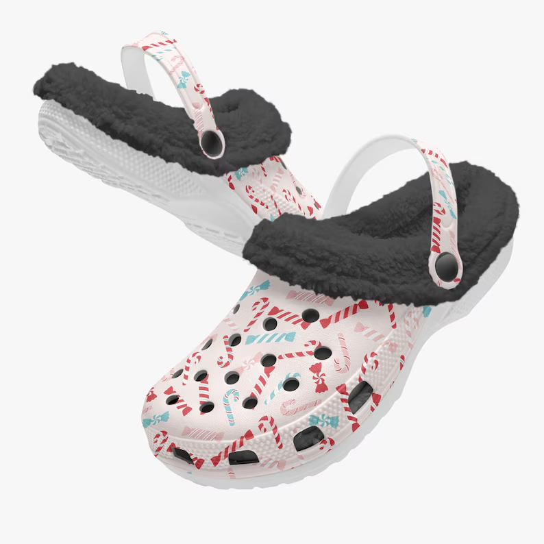 Footwearmerch Cute Candy Cane Christmas Crocs Crocband Fleece Lined Clogs Shoes Comfortable For Men Women and Kids In Winter