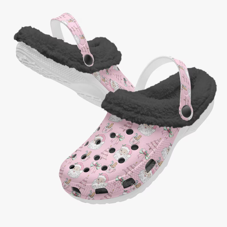Footwearmerch Cute Santa Claus Christmas Crocs Crocband Fleece Lined Clogs Shoes Comfortable For Men Women and Kids In Winter