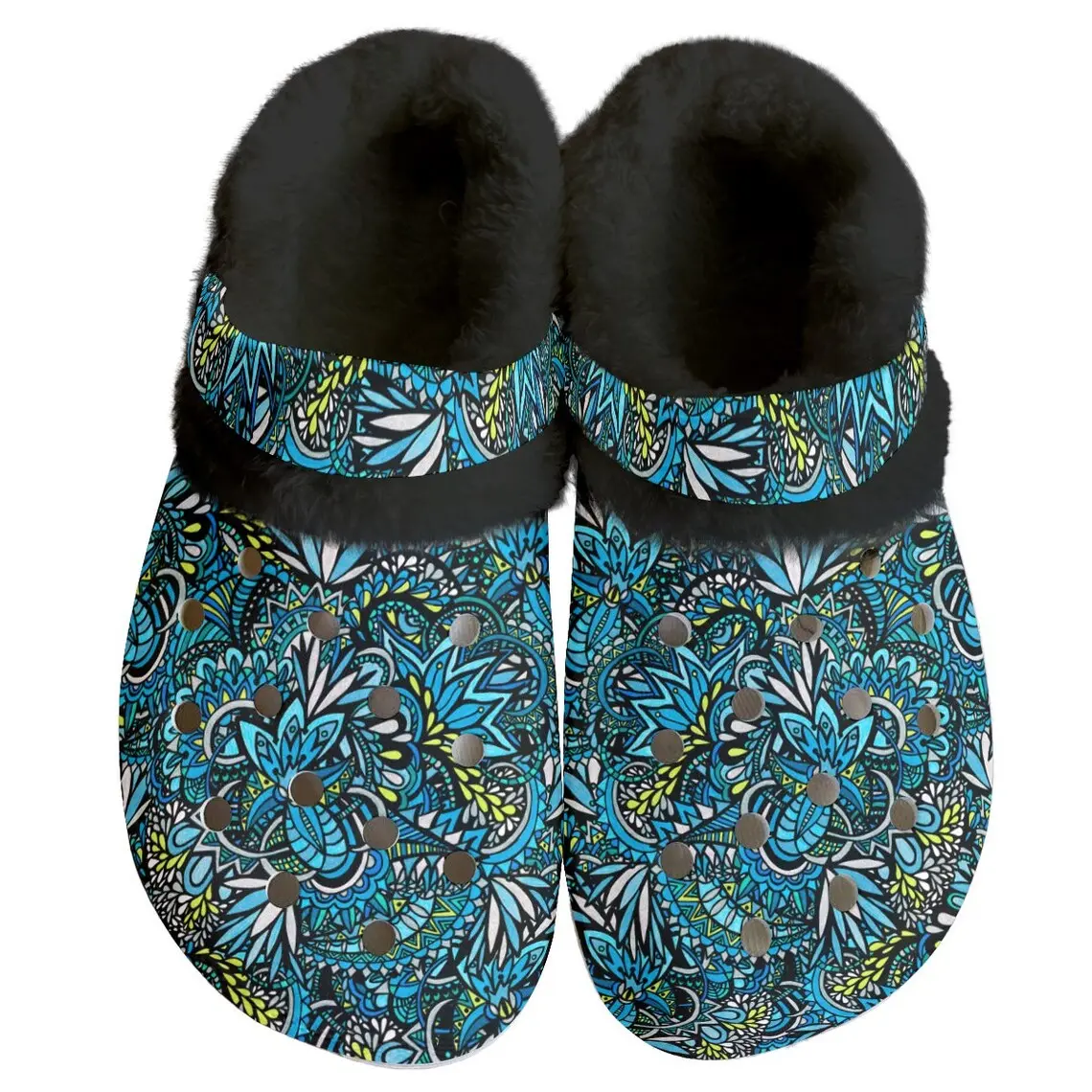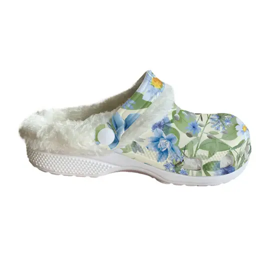 Footwearmerch Pretty Blue Floral Crocs Crocband Fleece Lined Clogs Shoes Comfortable For Men Women and Kids In Winter
