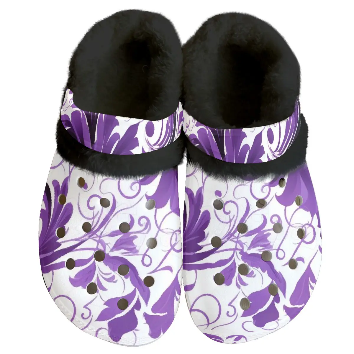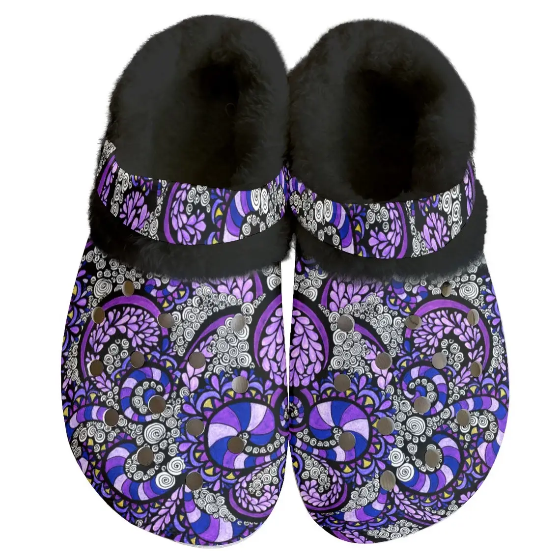 Footwearmerch Exotic Purple Polygon Crocs Crocband Fleece Lined Clogs Shoes Comfortable For Men Women and Kids In Winter