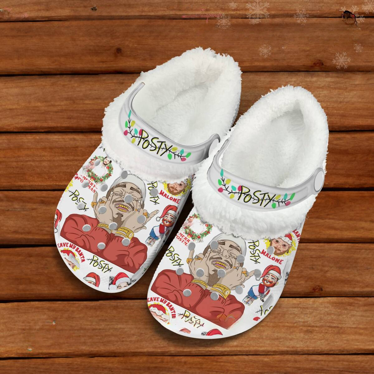 Footwearmerch Post Malone x Christmas Crocs Crocband Fleece Lined Clogs Shoes Comfortable For Men Women and Kids In Winter