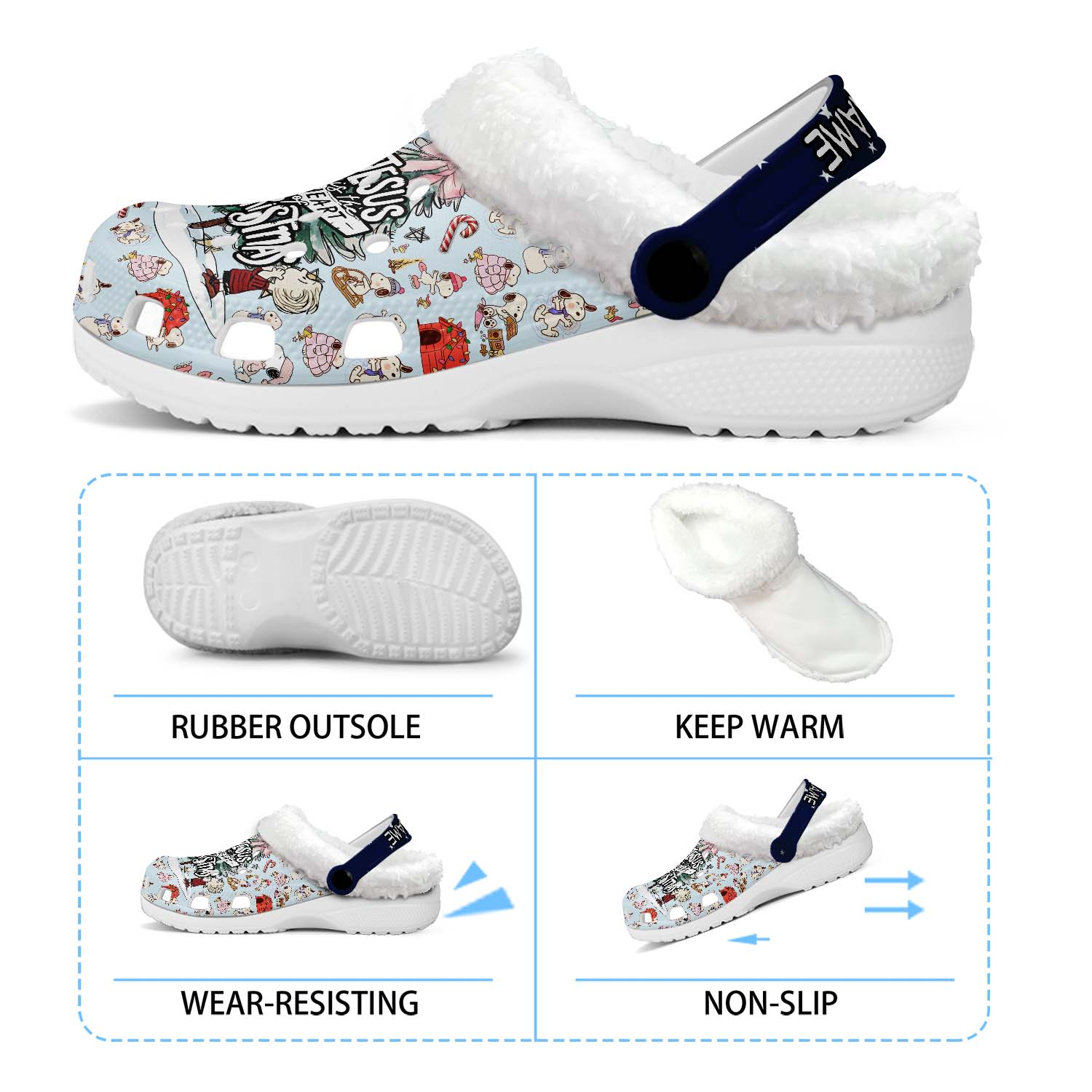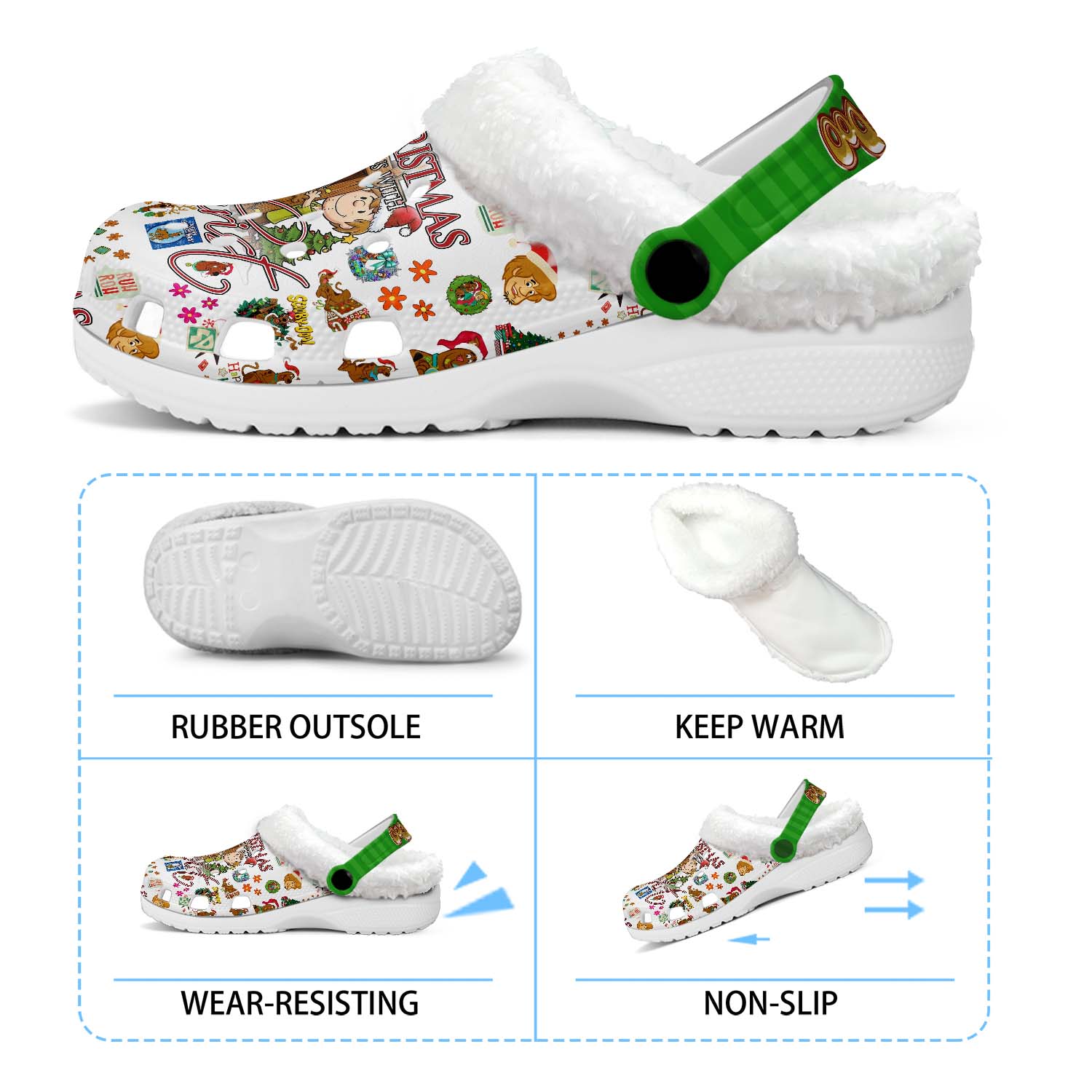 Footwearmerch Snoopy x Christmas Crocs Crocband Fleece Lined Clogs Shoes Comfortable For Men Women and Kids In Winter
