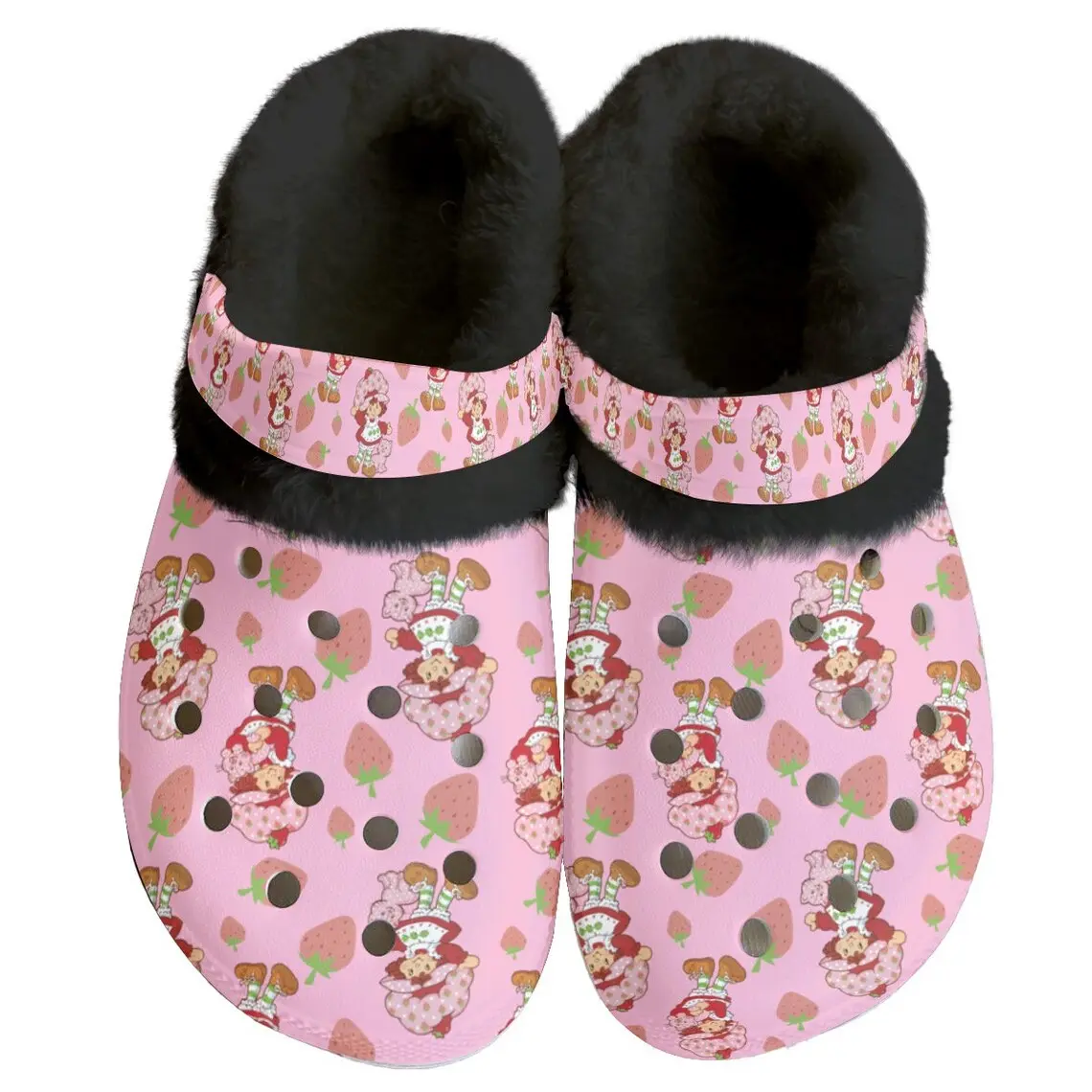 Footwearmerch Strawberry Shortcake Cartoon Crocs Crocband Fleece Lined Clogs Shoes Comfortable For Men Women and Kids In Winter