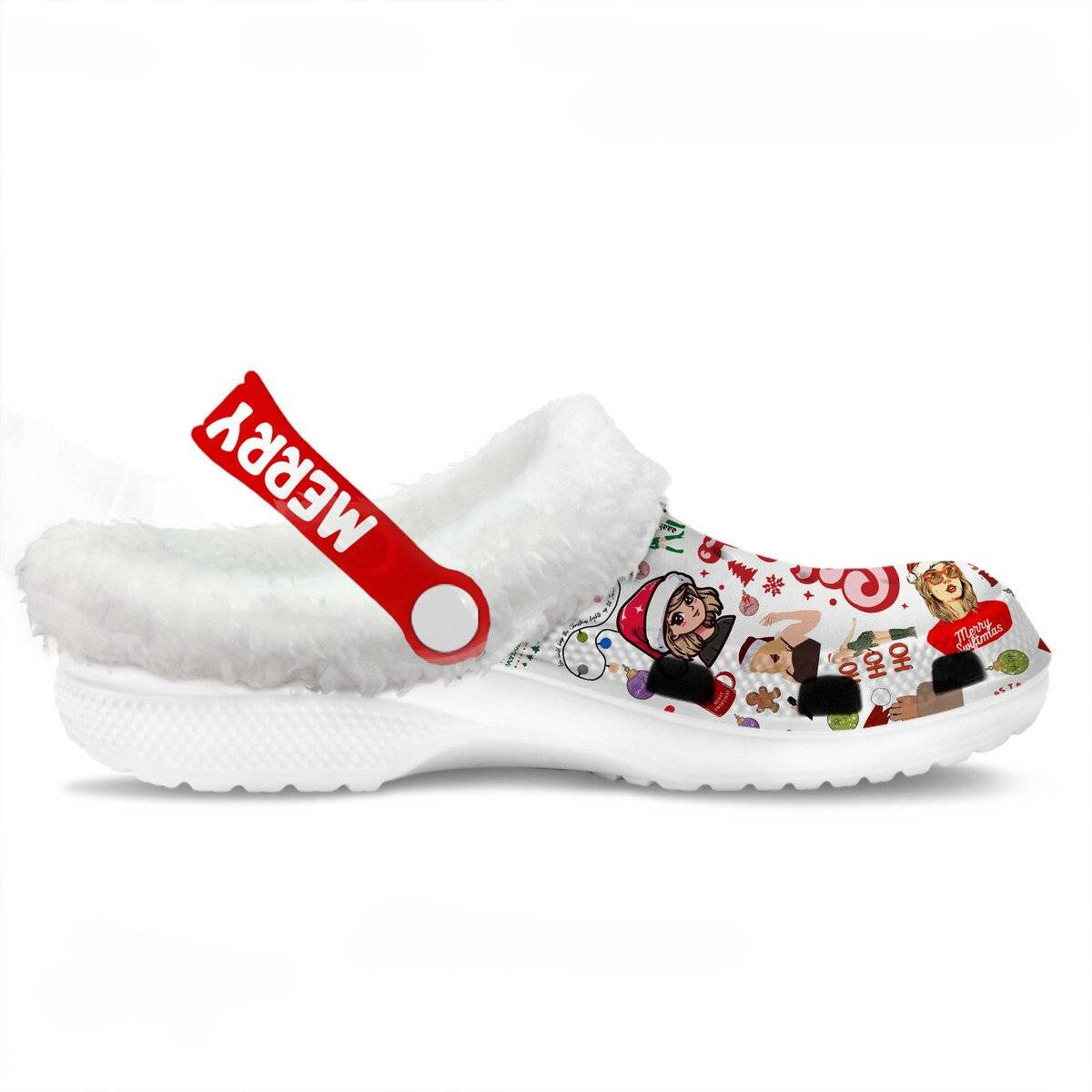 Footwearmerch Taylor Swift Music Christmas Crocs Crocband Fleece Lined Clogs Shoes Comfortable For Men Women and Kids In Winter
