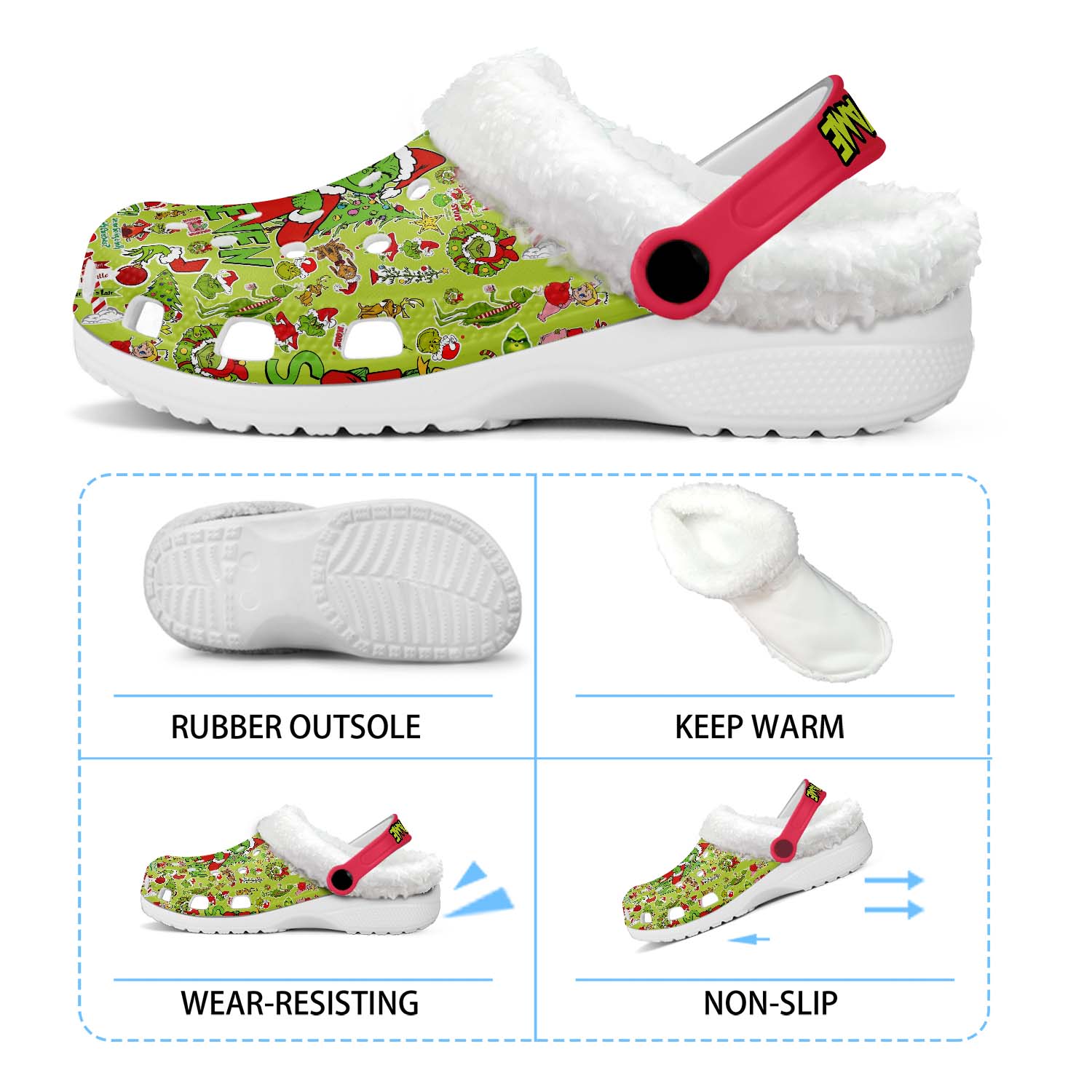 Footwearmerch The Grinch x Christmas Crocs Crocband Fleece Lined Clogs Shoes Comfortable For Men Women and Kids In Winter