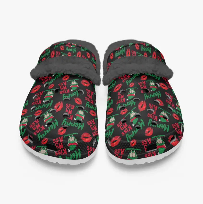 Footwearmerch Unique Kiss My Ass Christmas Crocs Crocband Fleece Lined Clogs Shoes Comfortable For Men Women and Kids In Winter