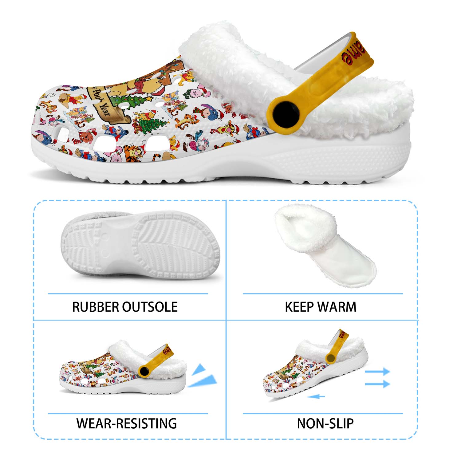 Footwearmerch Winnie the Pooh x Christmas Crocs Crocband Fleece Lined Clogs Shoes Comfortable For Men Women and Kids In Winter
