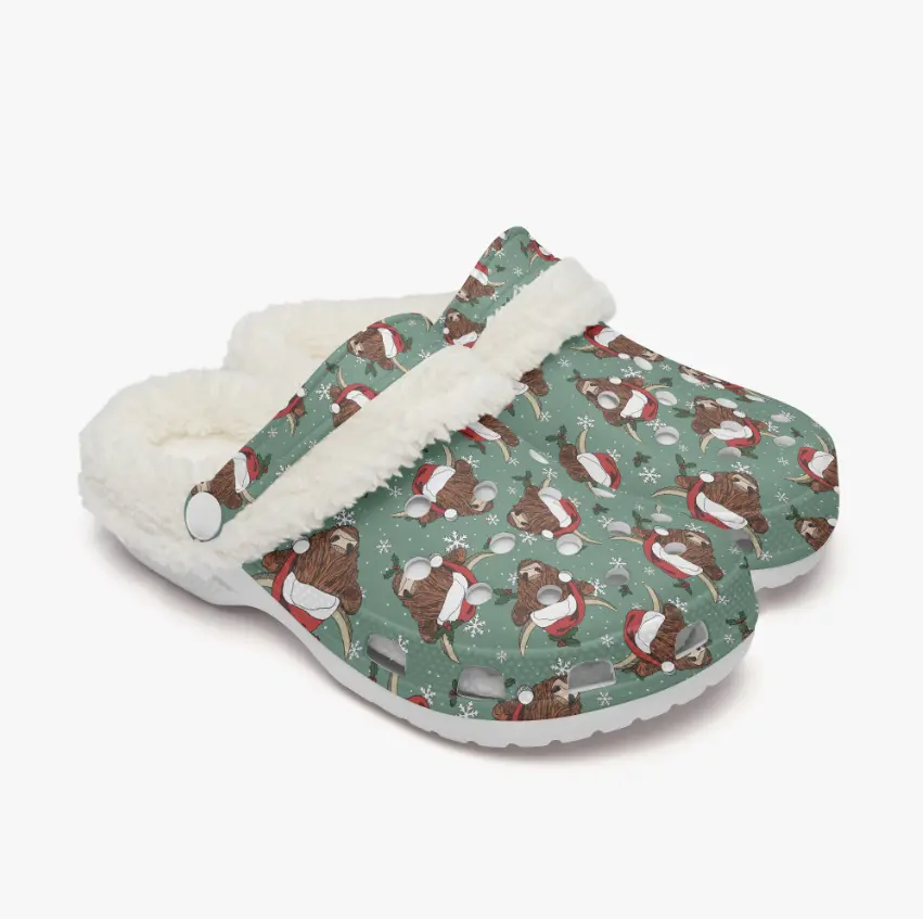 Footwearmerch Beautiful Hallmark Christmas Crocs Crocband Fleece Lined Clogs Shoes Comfortable For Men Women and Kids In Winter
