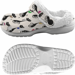 Footwearmerch Cutesy White Cat Crocs Crocband Fleece Lined Clogs Shoes Comfortable For Men Women and Kids In Winter