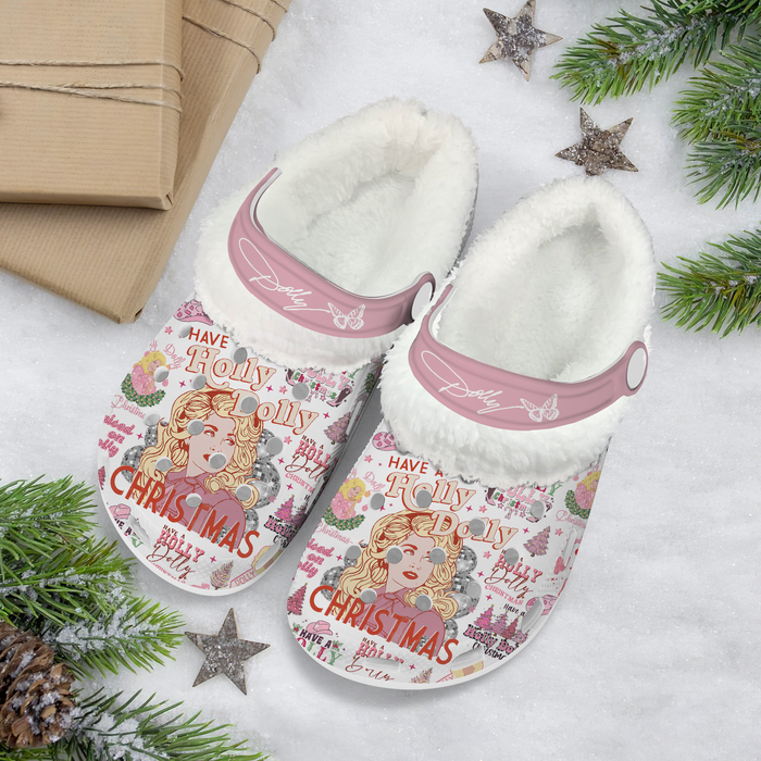 Footwearmerch Dolly Parton x Christmas Crocs Crocband Fleece Lined Clogs Shoes Comfortable For Men Women and Kids In Winter