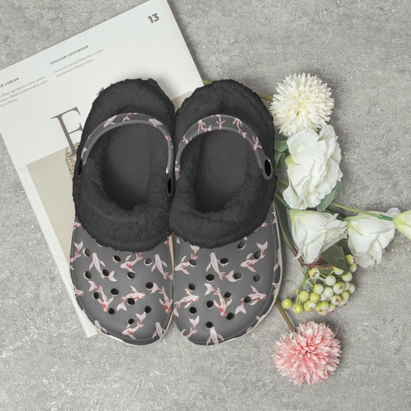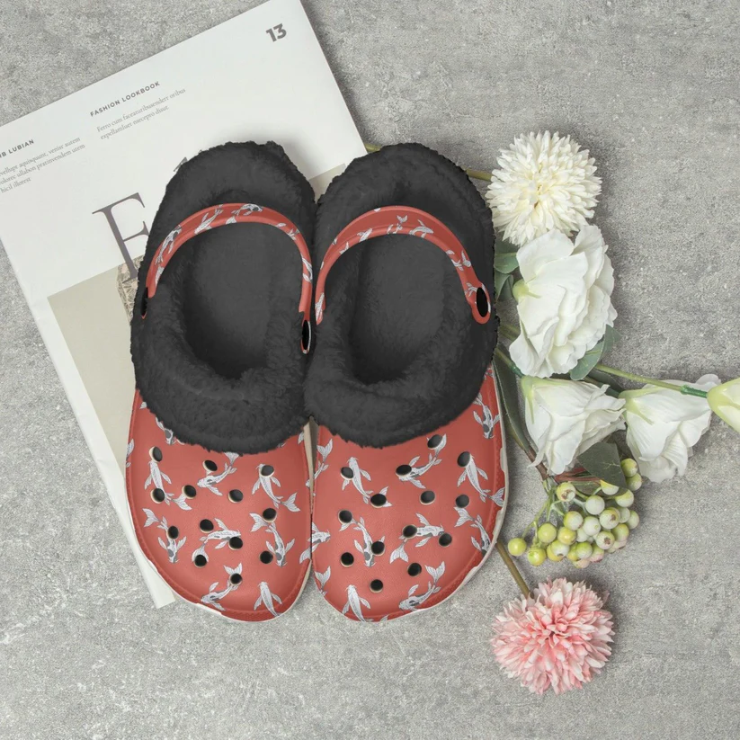 Footwearmerch Koi Fish Crocs Crocband Fleece Lined Clogs Shoes Comfortable For Men Women and Kids In Winter
