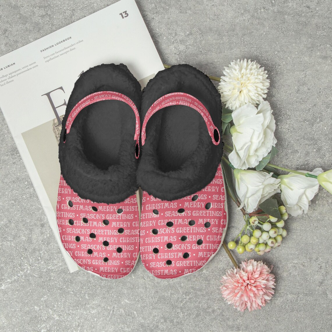 Footwearmerch Merry Christmas Greeting Season Red Crocs Crocband Fleece Lined Clogs Shoes Comfortable For Men Women and Kids In Winter