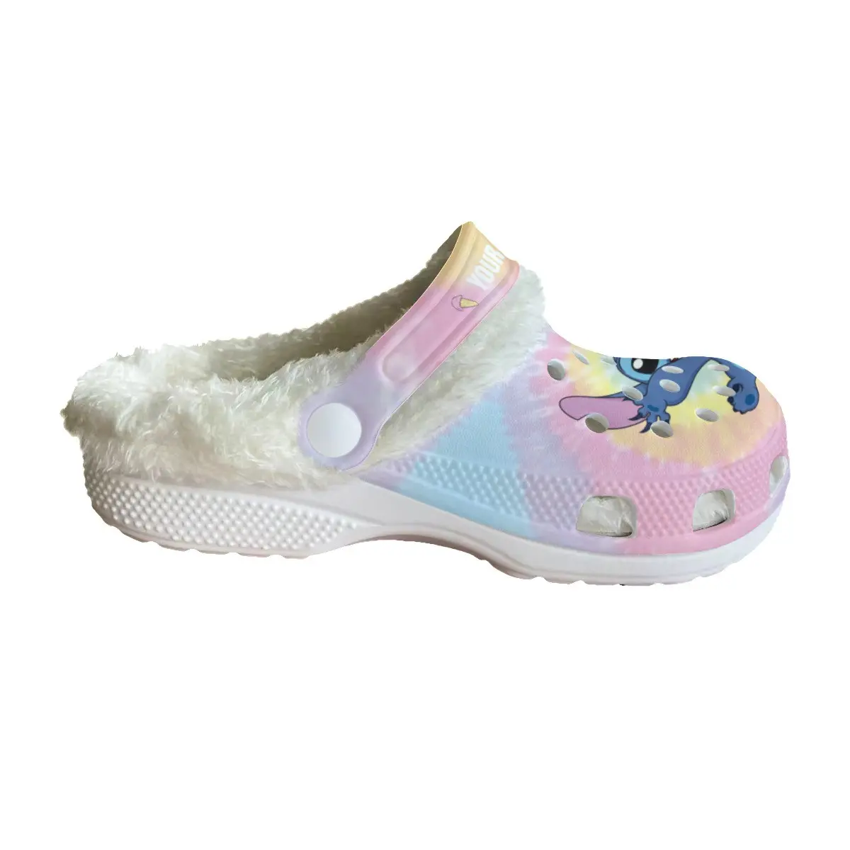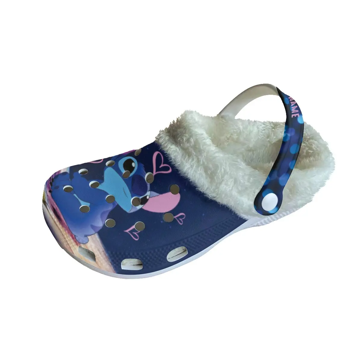 Footwearmerch Stitch Cartoon Crocs Crocband Fleece Lined Clogs Shoes Comfortable For Men Women and Kids In Winter