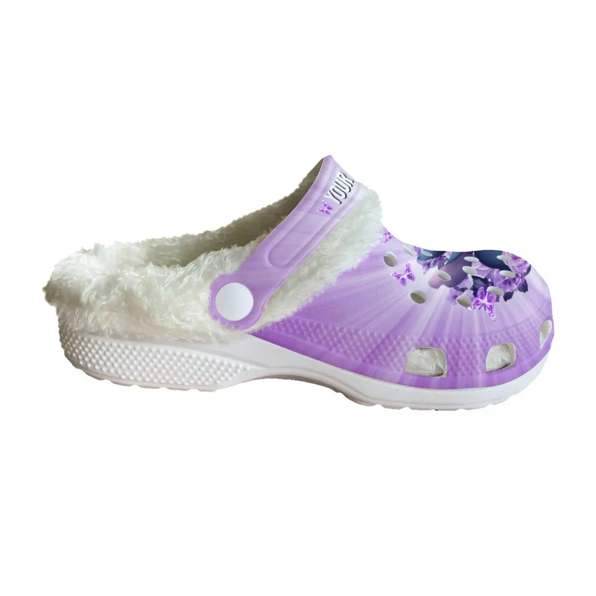 Footwearmerch Beautiful Cozy Orchid Flower Crocs Crocband Fleece Lined Clogs Shoes Comfortable For Men Women and Kids In Winter