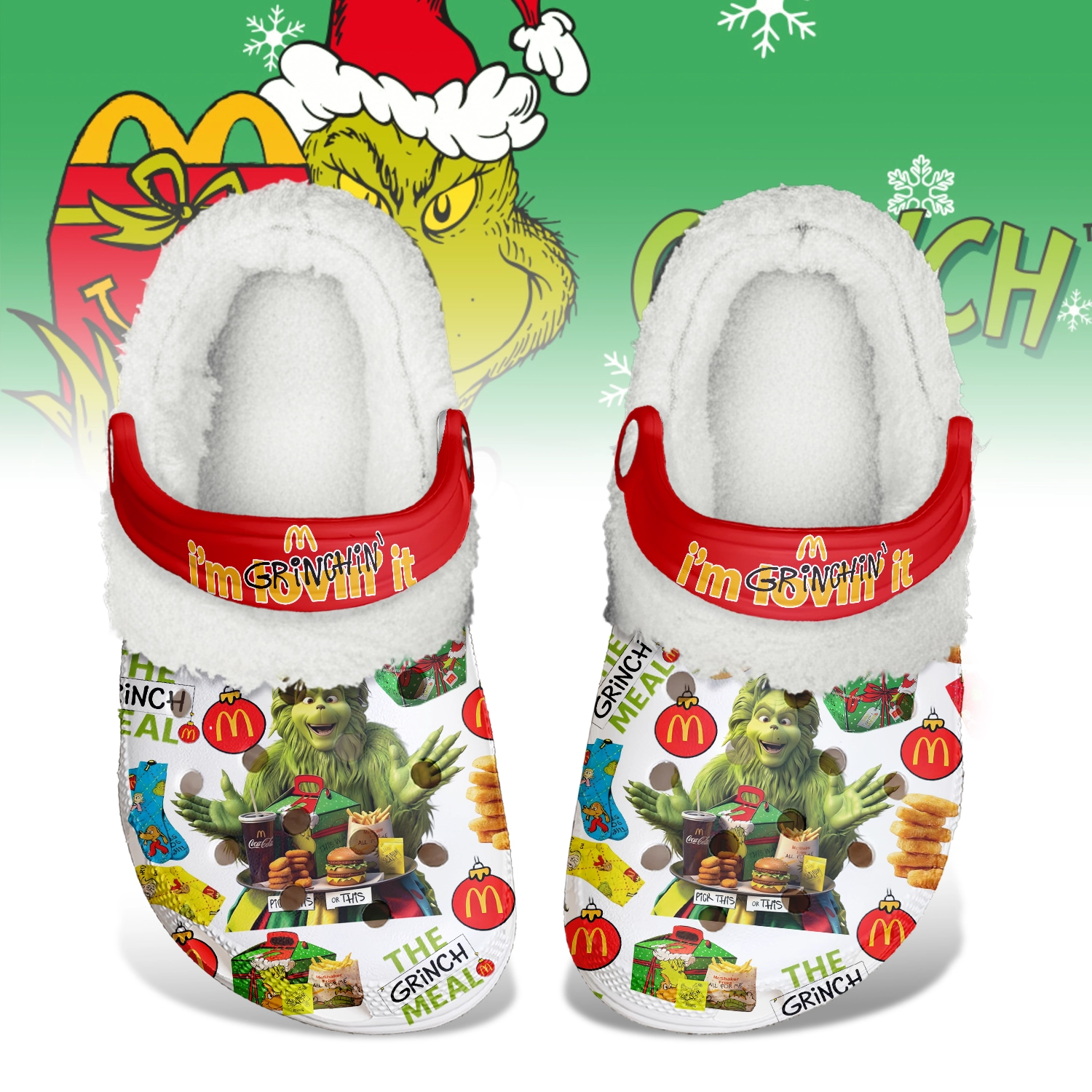 Footwearmerch The Grinch x Mcdonald’s Crocs Crocband Fleece Lined Clogs Shoes Comfortable For Men Women and Kids In Winter