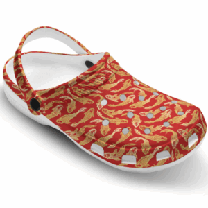 Footwearmerch Vibrant Red Golden Koi Fish Crocs Crocband Clogs Shoes Comfortable For Men Women and Kids