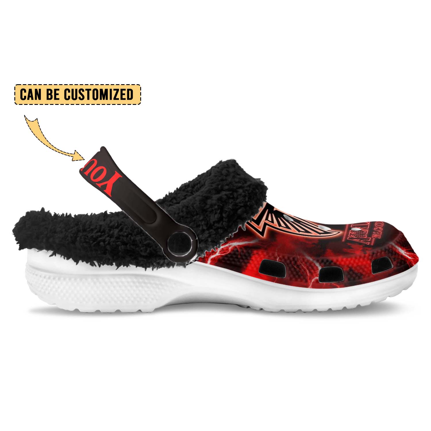 Footwearmerch Atlanta Falcons x Stranger Things Crocs Crocband Fleece Lined Clogs Shoes Comfortable For Men Women and Kids In Winter