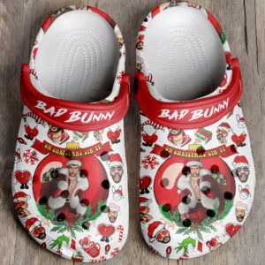 Footwearmerch Bad Bunny x Christmas Music Crocs Crocband Clogs Shoes Comfortable For Men Women and Kids