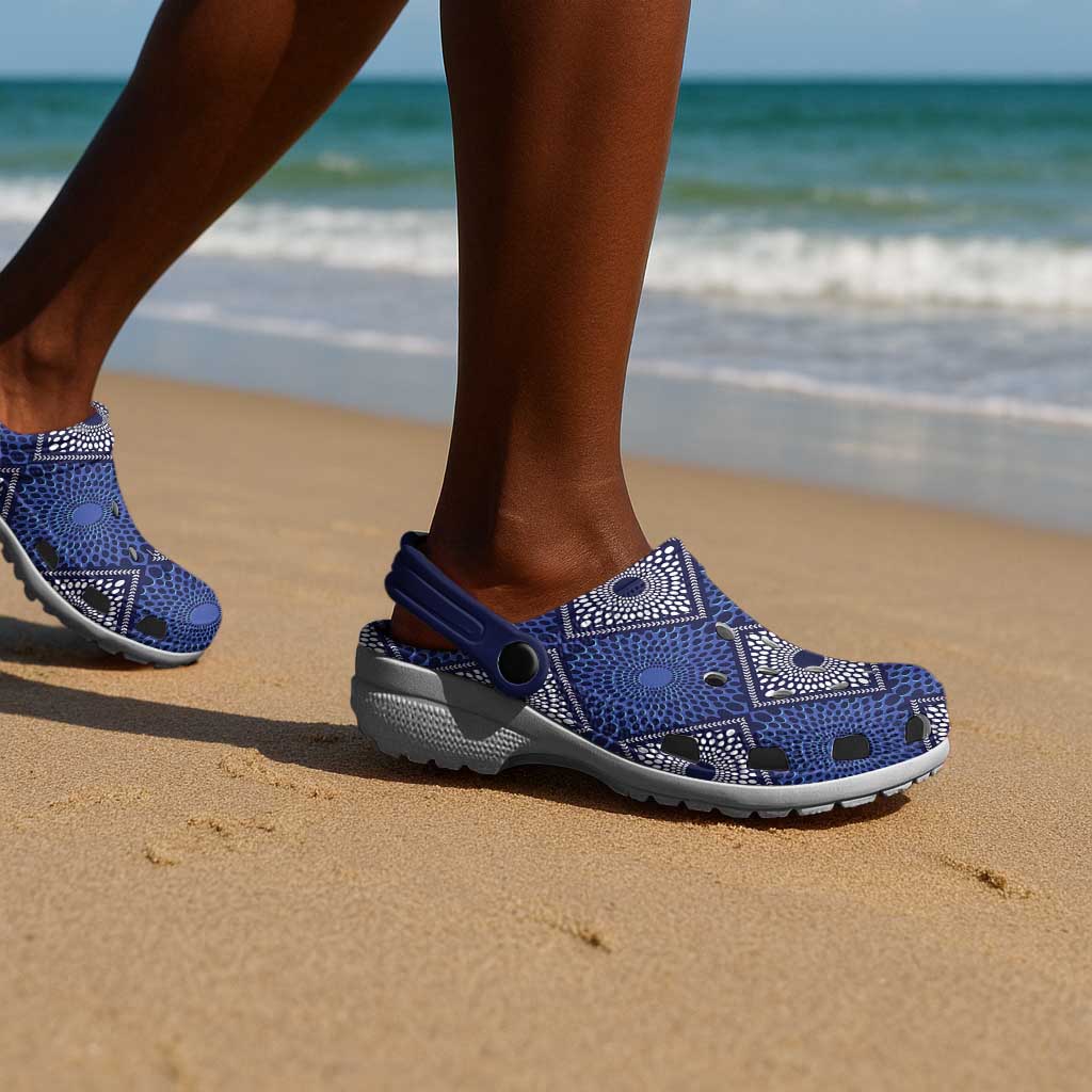 Footwearmerch Indigo Diamond African Ankara Crocs Crocband Clogs Shoes Comfortable For Men Women and Kids