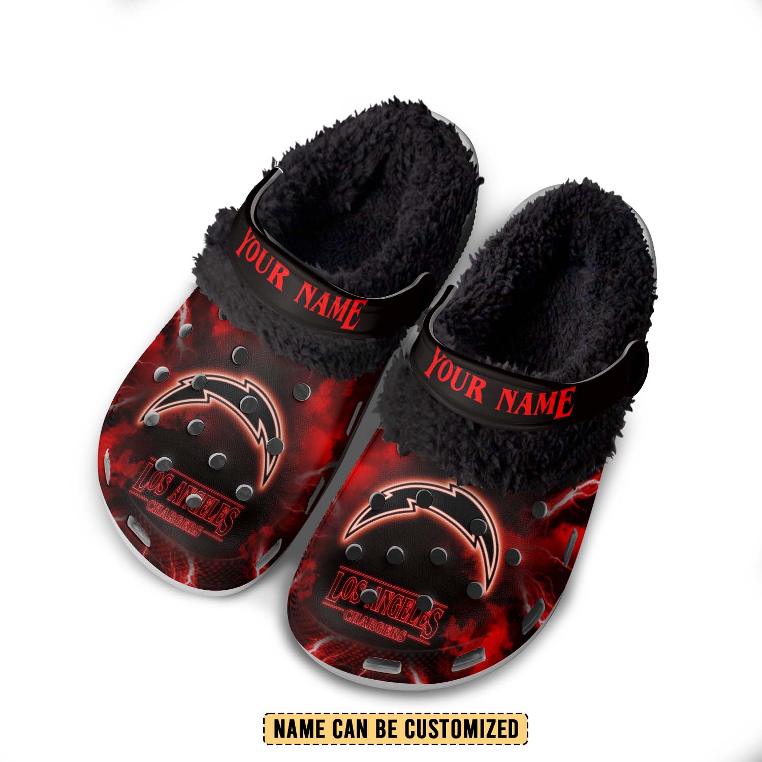 Footwearmerch Los Angeles Chargers x Stranger Things Crocs Crocband Fleece Lined Clogs Shoes Comfortable For Men Women and Kids In Winter