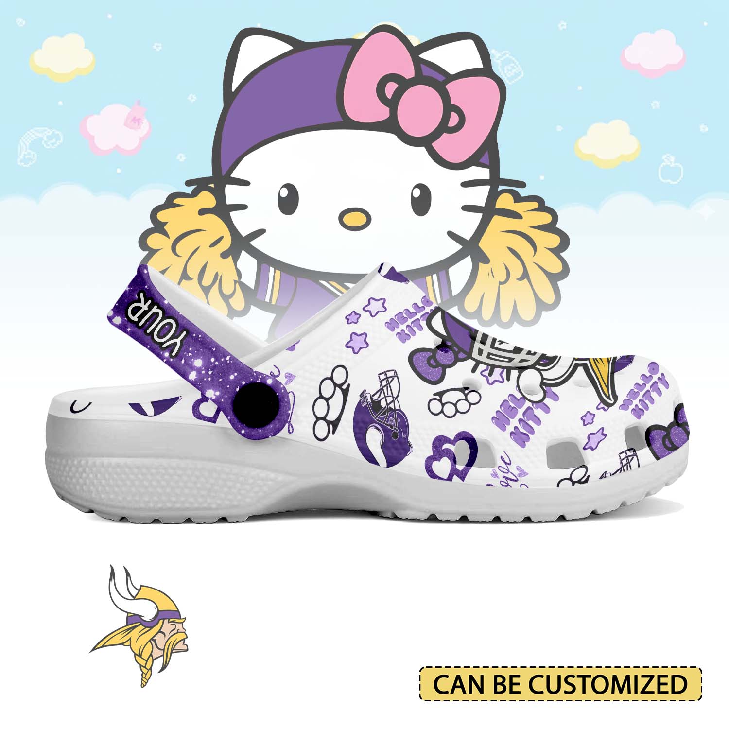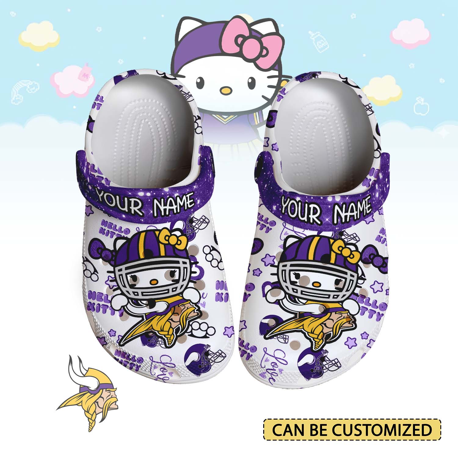 Footwearmerch Minnesota Vikings x Hello Kitty Crocs Crocband Clogs Shoes Comfortable For Men Women and Kids