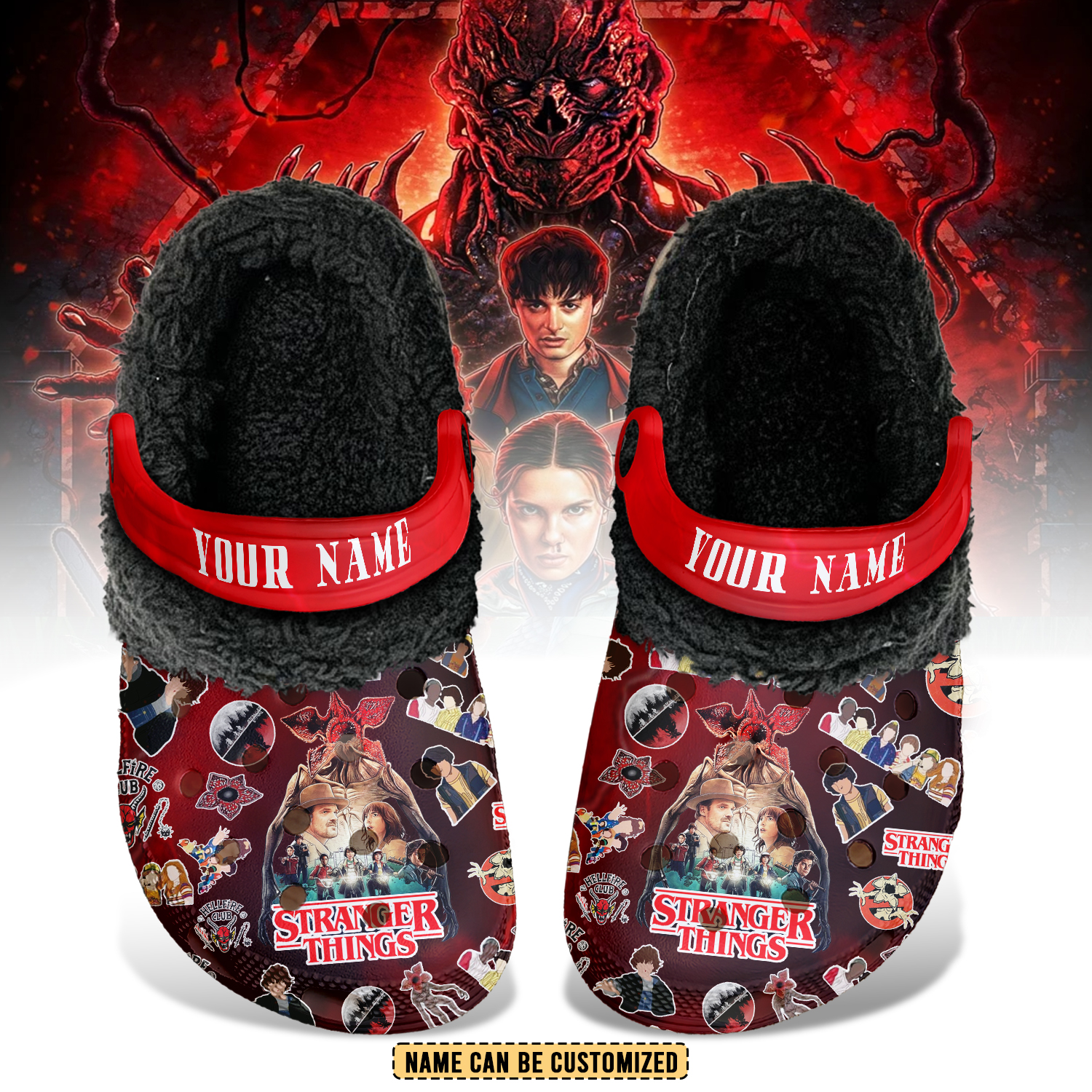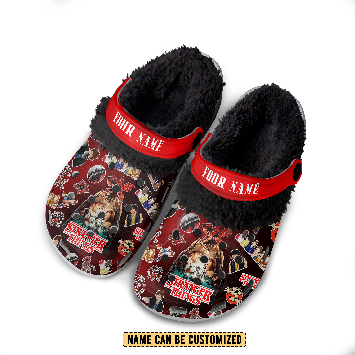Footwearmerch Stranger Things TV Series Crocs Crocband Fleece Lined Clogs Shoes Comfortable For Men Women and Kids In Winter