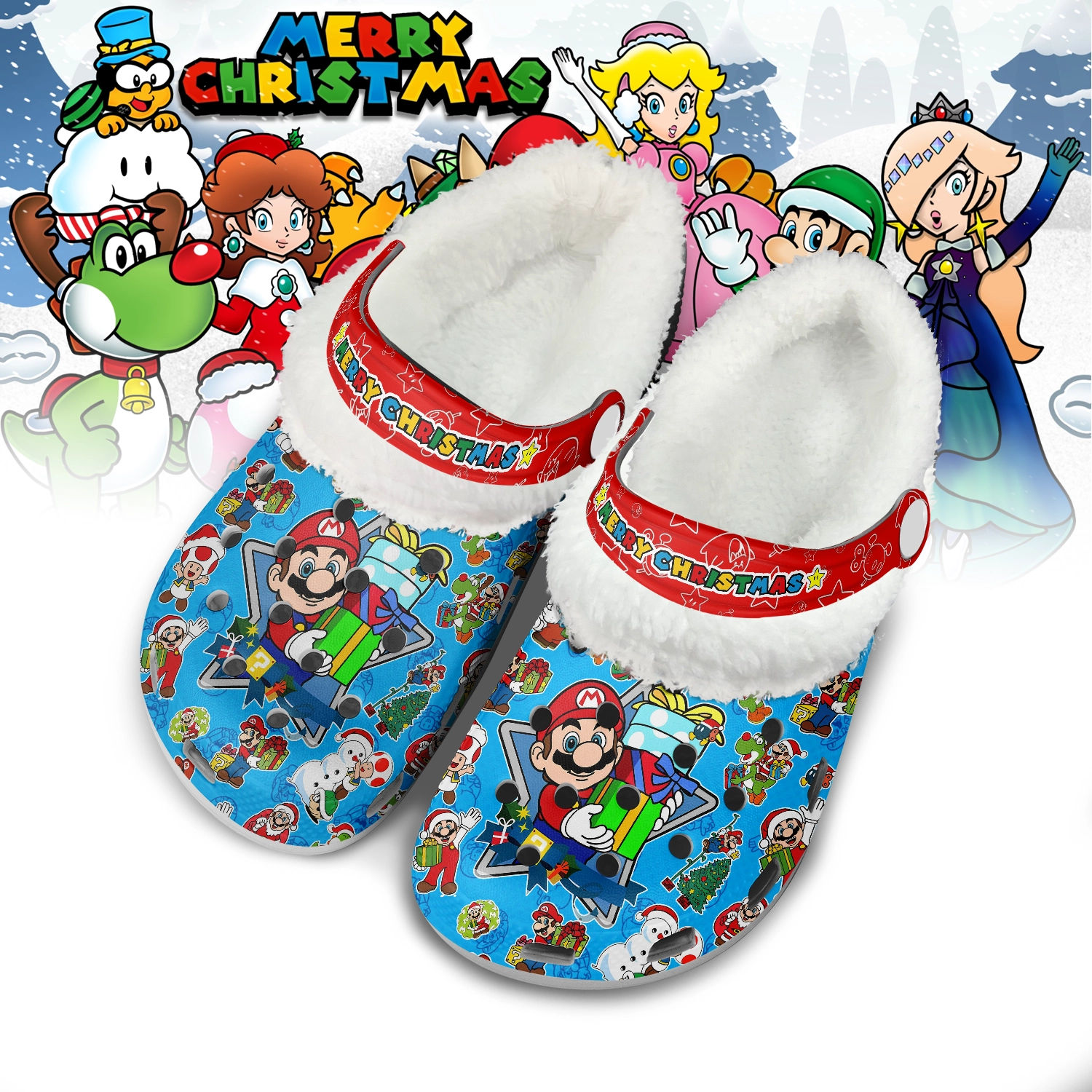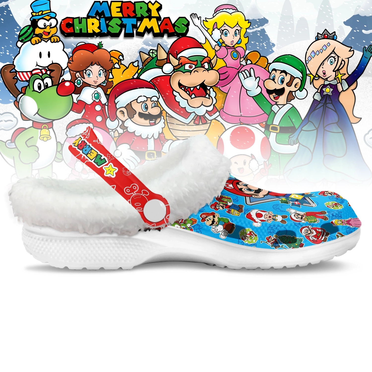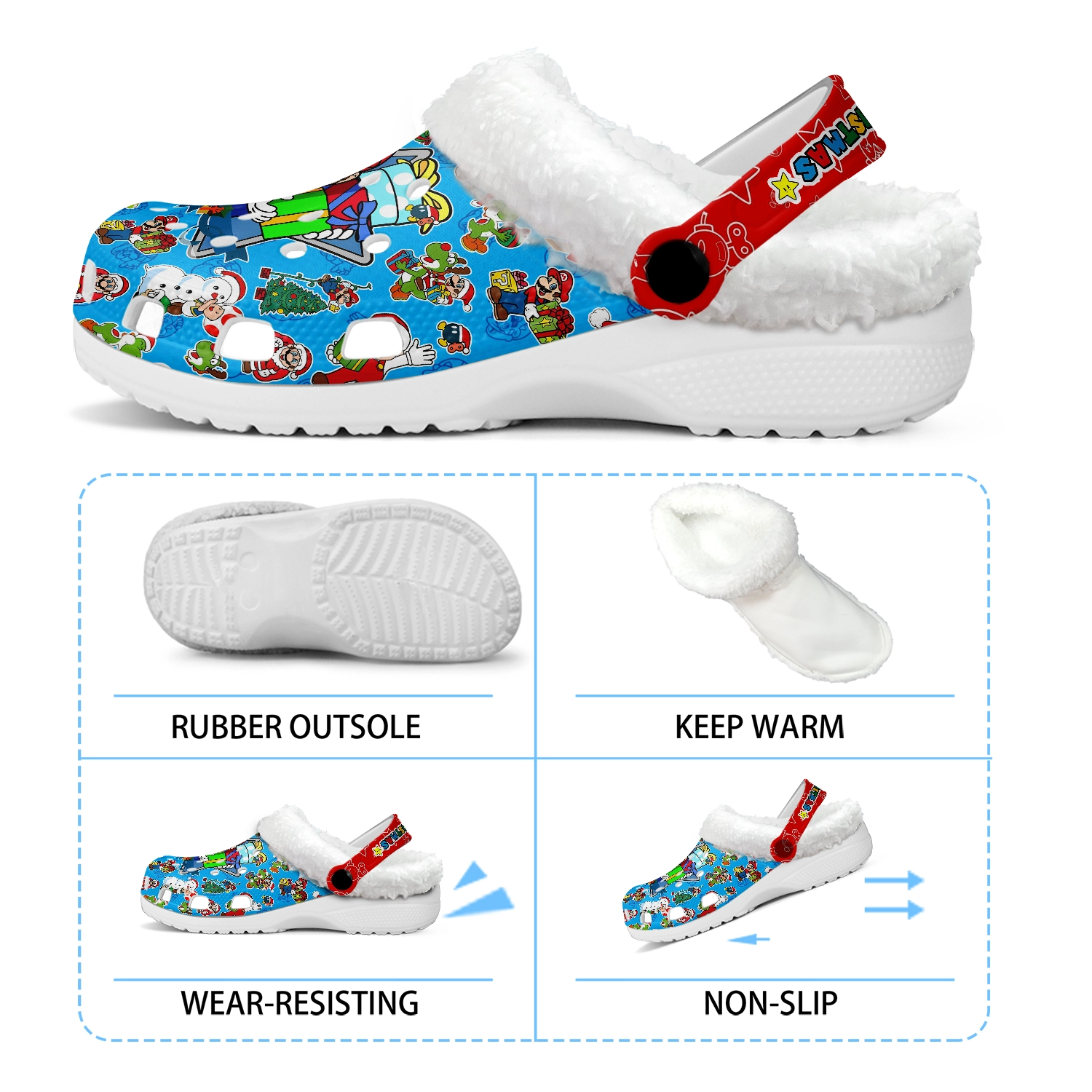 Footwearmerch Mario x Christmas Crocs Crocband Fleece Lined Clogs Shoes Comfortable For Men Women and Kids In Winter