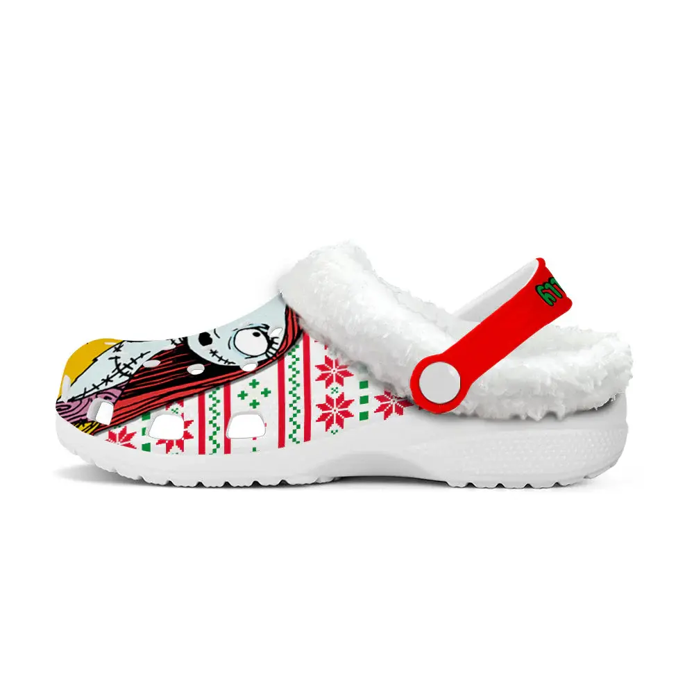 Footwearmerch The Nightmare Before Christmas Movie Crocs Crocband Fleece Lined Clogs Shoes Comfortable For Men Women and Kids In Winter