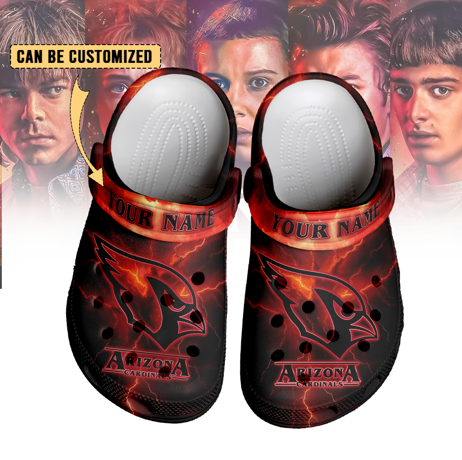 Footwearmerch Arizona Cardinals x Stranger Things Crocs Crocband Clogs Shoes Comfortable For Men Women and Kids
