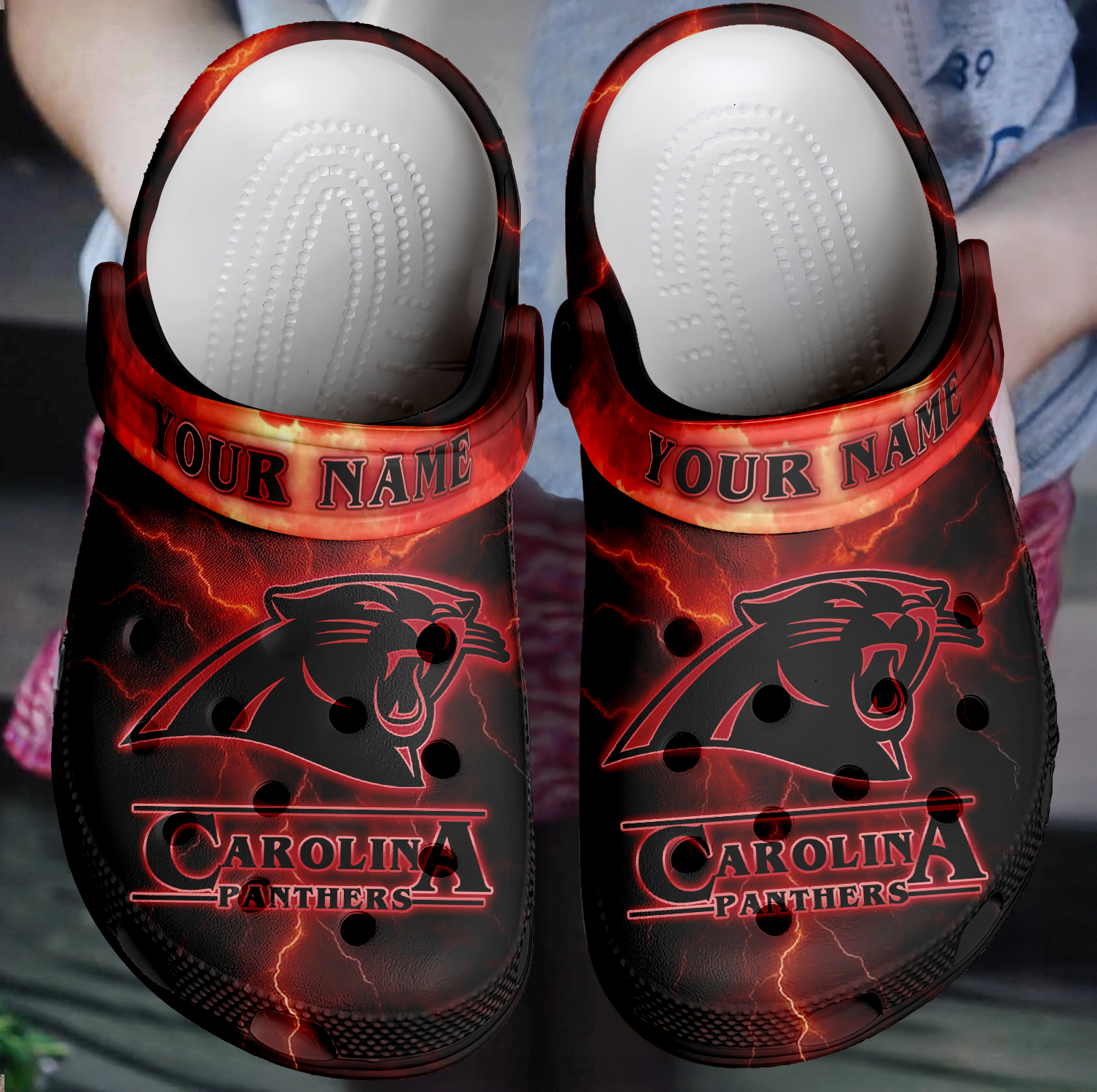Footwearmerch Carolina Panthers x Stranger Things Crocs Crocband Clogs Shoes Comfortable For Men Women and Kids