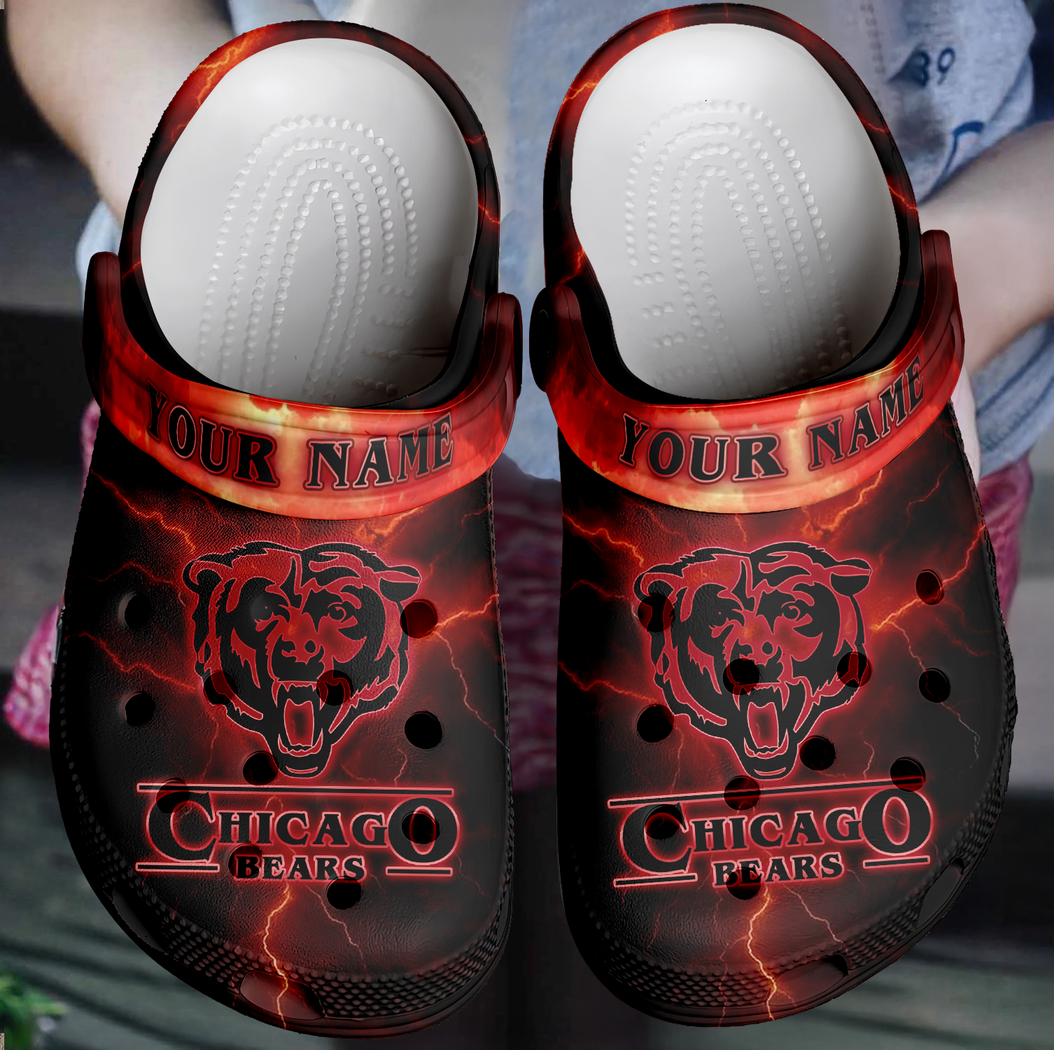 Footwearmerch Chicago Bears x Stranger Things Crocs Crocband Clogs Shoes Comfortable For Men Women and Kids