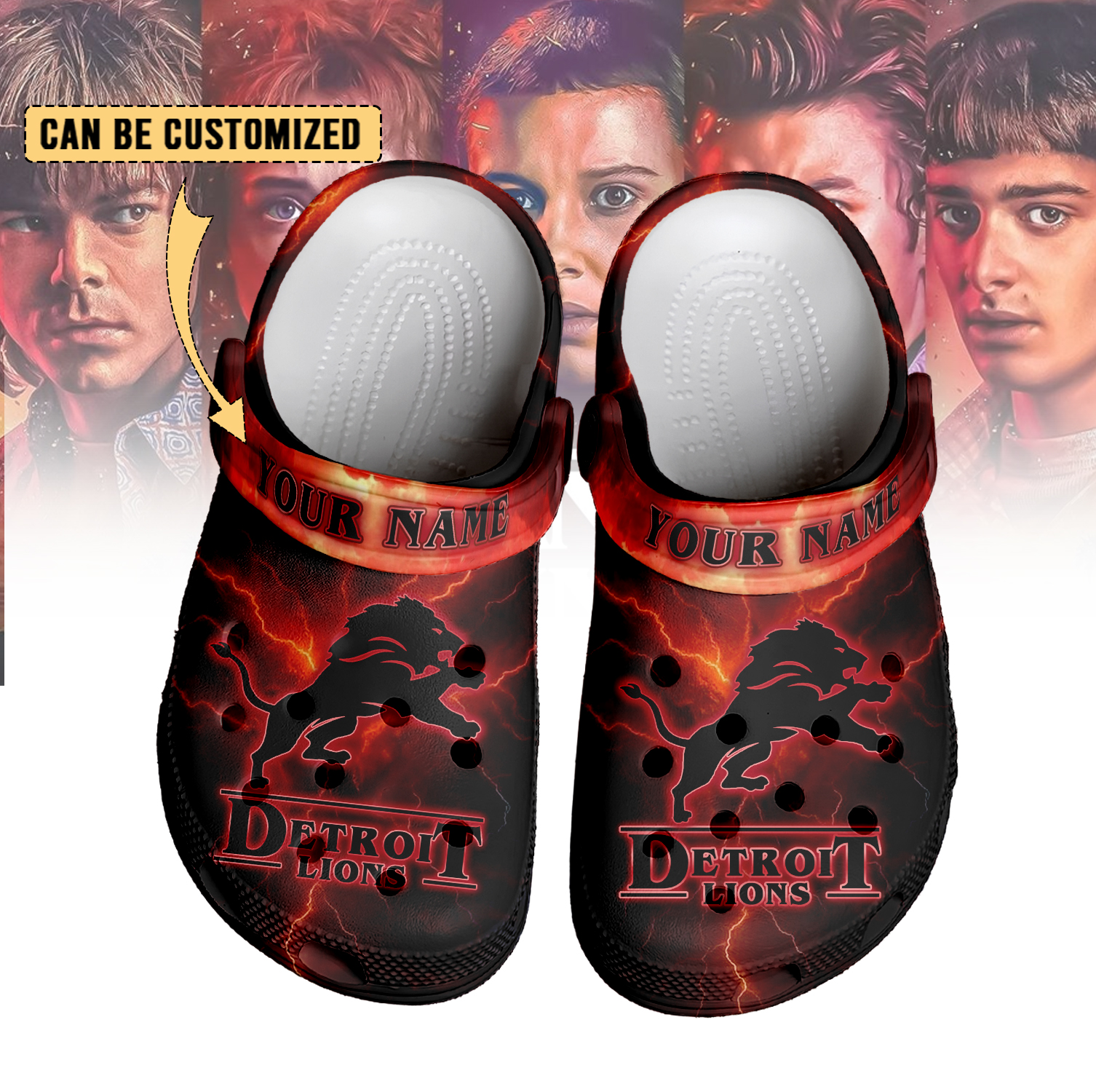 Footwearmerch Detroit Lions x Stranger Things Crocs Crocband Clogs Shoes Comfortable For Men Women and Kids