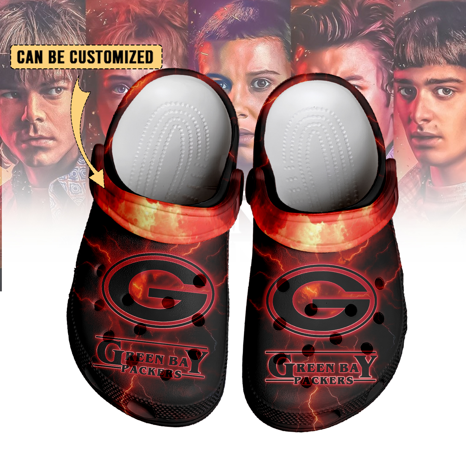 Footwearmerch Green Bay Packers x Stranger Things Crocs Crocband Clogs Shoes Comfortable For Men Women and Kids