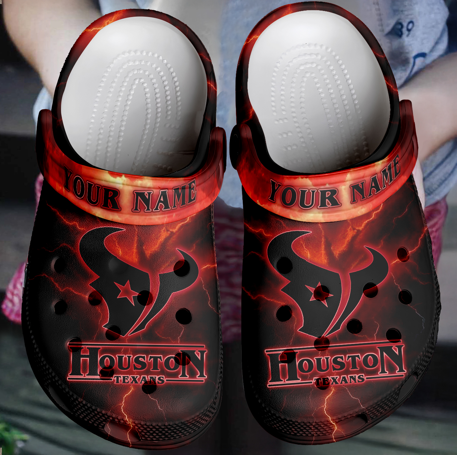 Footwearmerch Houston Texans x Stranger Things Crocs Crocband Clogs Shoes Comfortable For Men Women and Kids