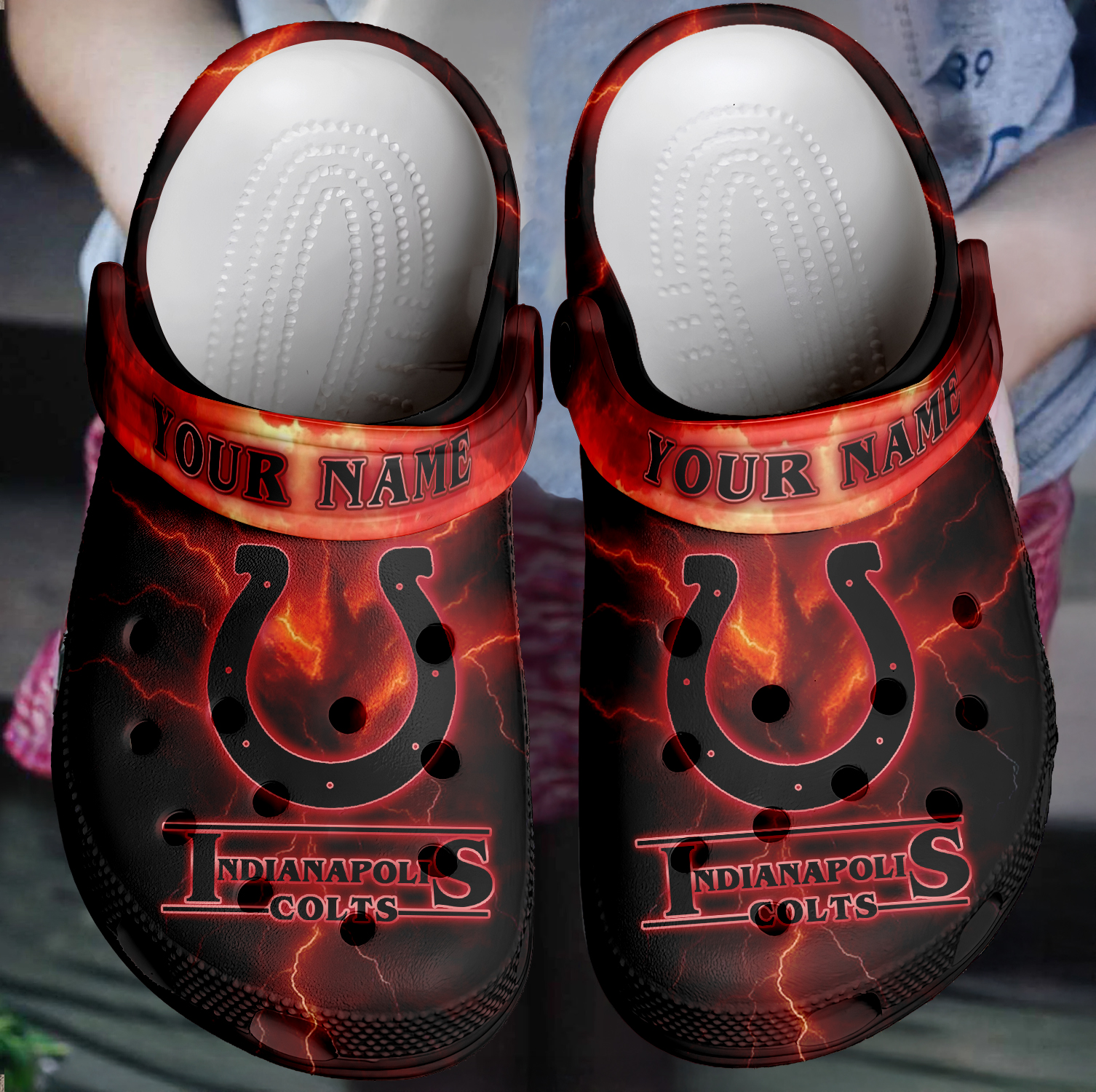 Footwearmerch Indianapolis Colts x Stranger Things Crocs Crocband Clogs Shoes Comfortable For Men Women and Kids