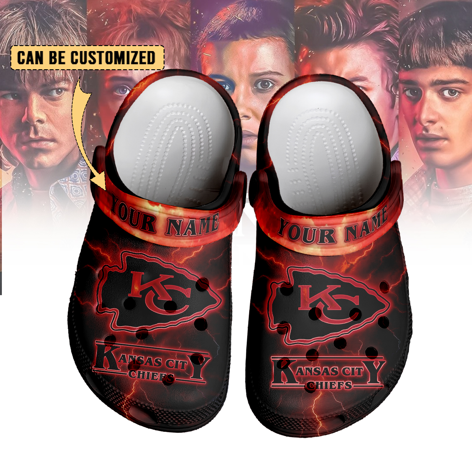 Footwearmerch Kansas City Chiefs x Stranger Things Crocs Crocband Clogs Shoes Comfortable For Men Women and Kids