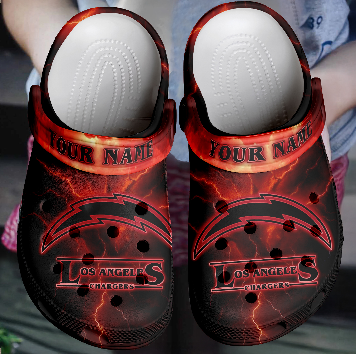 Footwearmerch Los Angeles Chargers x Stranger Things Crocs Crocband Clogs Shoes Comfortable For Men Women and Kids
