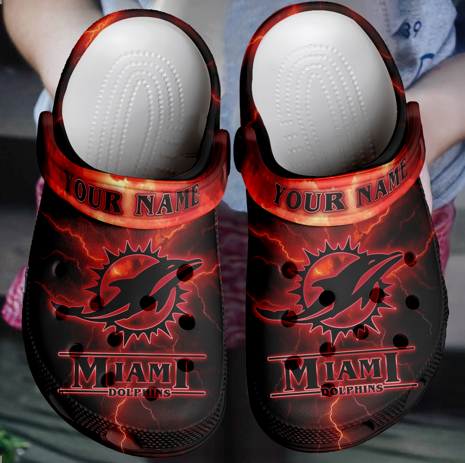 Footwearmerch Miami Dolphins x Stranger Things Crocs Crocband Clogs Shoes Comfortable For Men Women and Kids