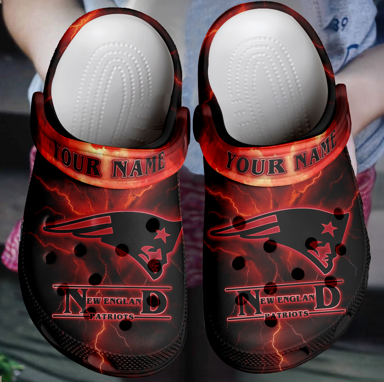 Footwearmerch New England Patriots x Stranger Things Crocs Crocband Clogs Shoes Comfortable For Men Women and Kids