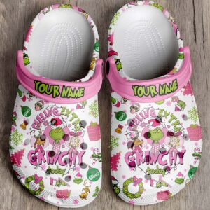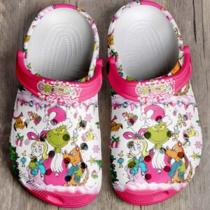 Footwearmerch Pink Grinch x Christmas Crocs Crocband Clogs Shoes Comfortable For Men Women and Kids