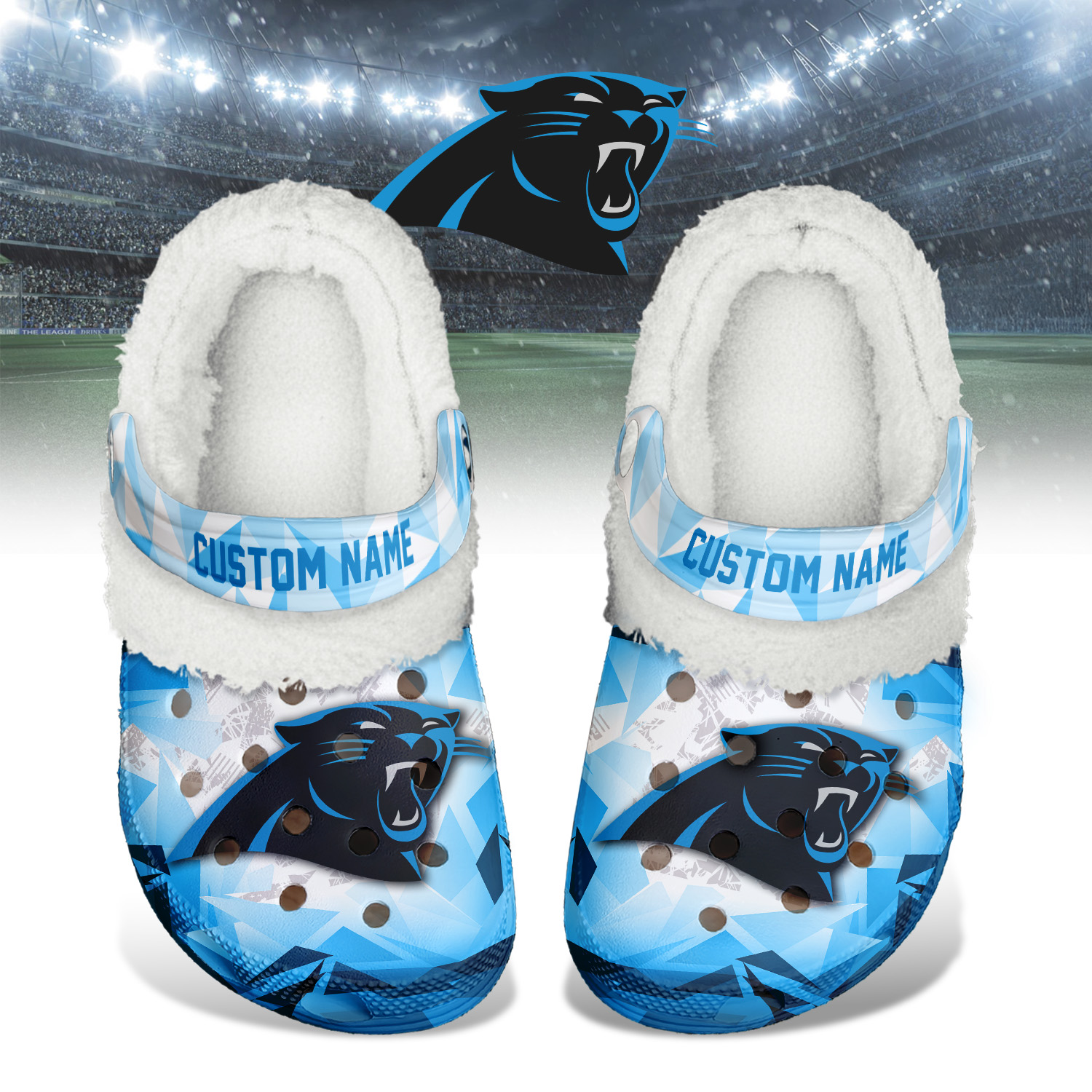 Footwearmerch Carolina Panthers NFL Crocs Crocband Fleece Lined Clogs Shoes Comfortable For Men Women and Kids In Winter