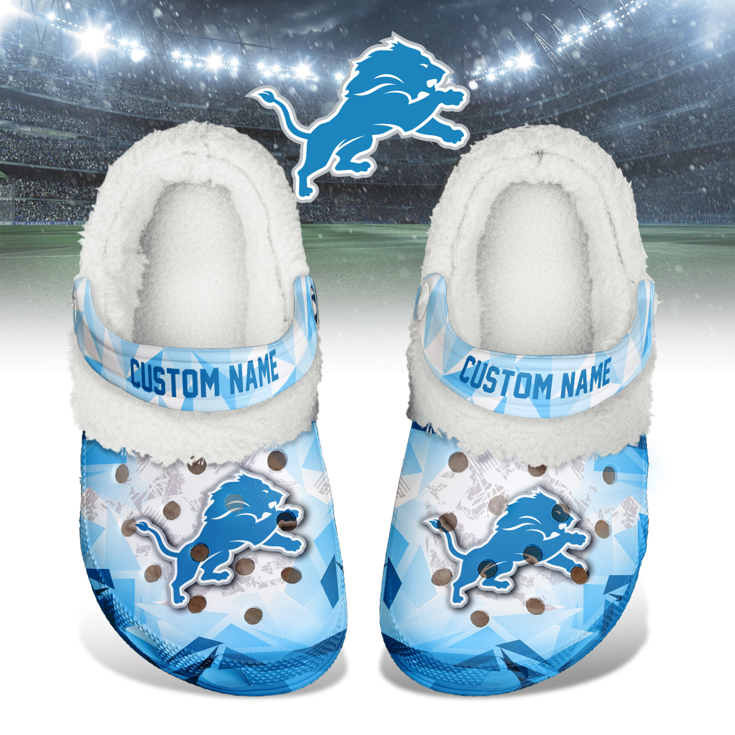 Footwearmerch Detroit Lions NFL Crocs Crocband Fleece Lined Clogs Shoes Comfortable For Men Women and Kids In Winter